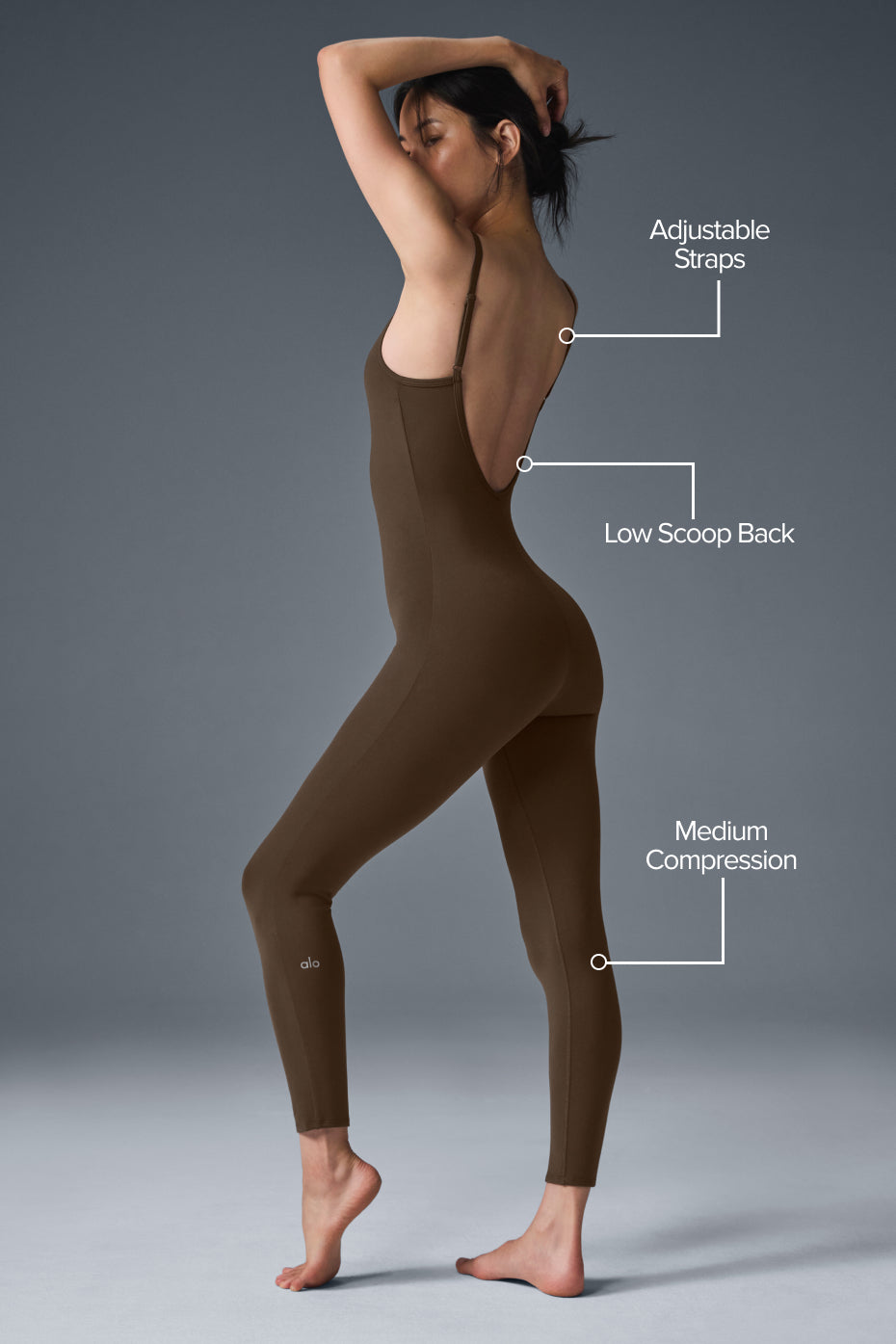 One thing about a onesie? It works every time. Full-length and full-proof, this is the easiest way to style an effortless outfit. It’s designed with a low back, sculpting Airbrush fabric that hugs the body, and adjustable straps for the perfect fit. Wear it solo or layered up.