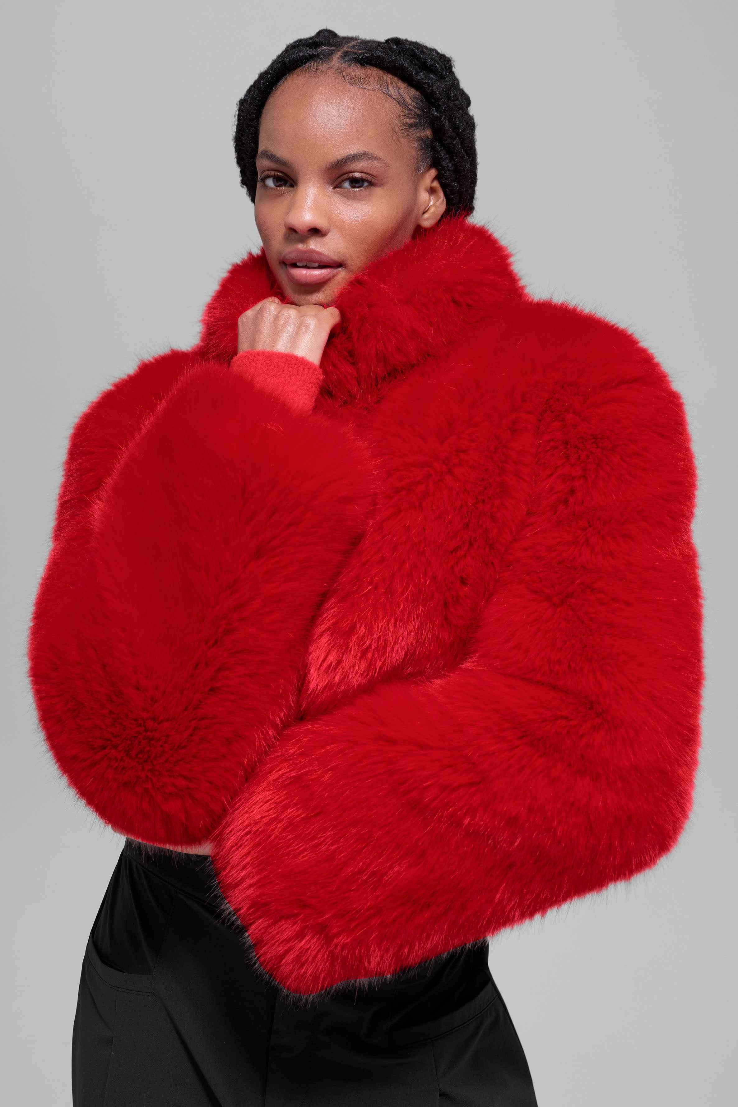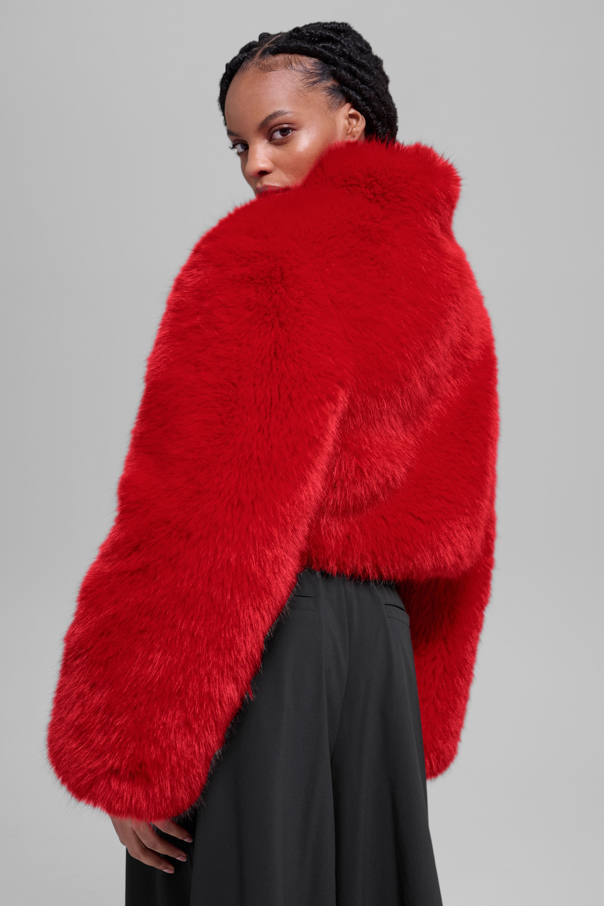 Fun, elegant and seriously chic, this jacket is rendered in lusciously soft, ultra-fluffy faux fur. It has a boxy shape that falls to the waist and a stand collar. If you’d prefer to wear it closed, there are 2 hook-and-eye closures in front. Most importantly, it elevates everything you pair it with, from plain tees to black tie dresses.