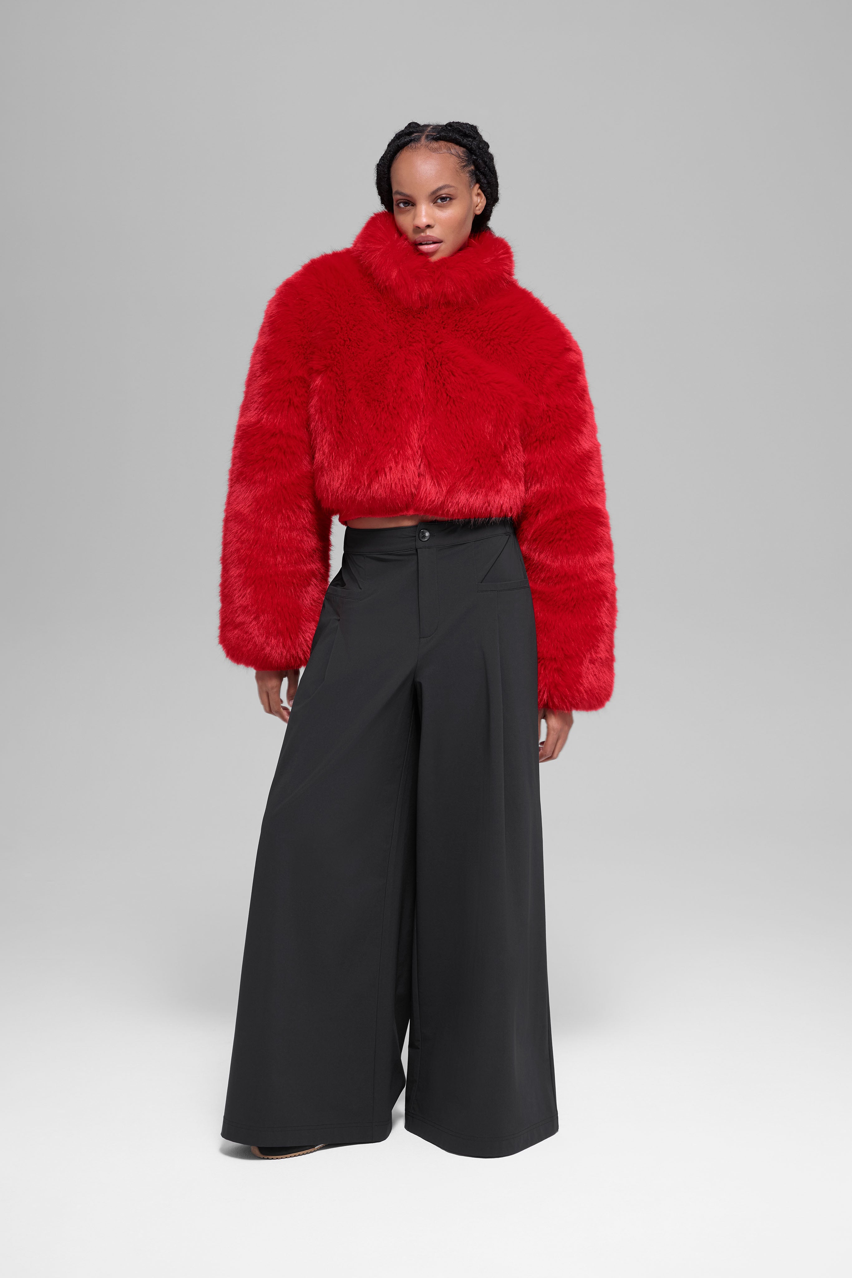 Designed for a boxy, cropped fit with a dramatic, fluffy silhouette