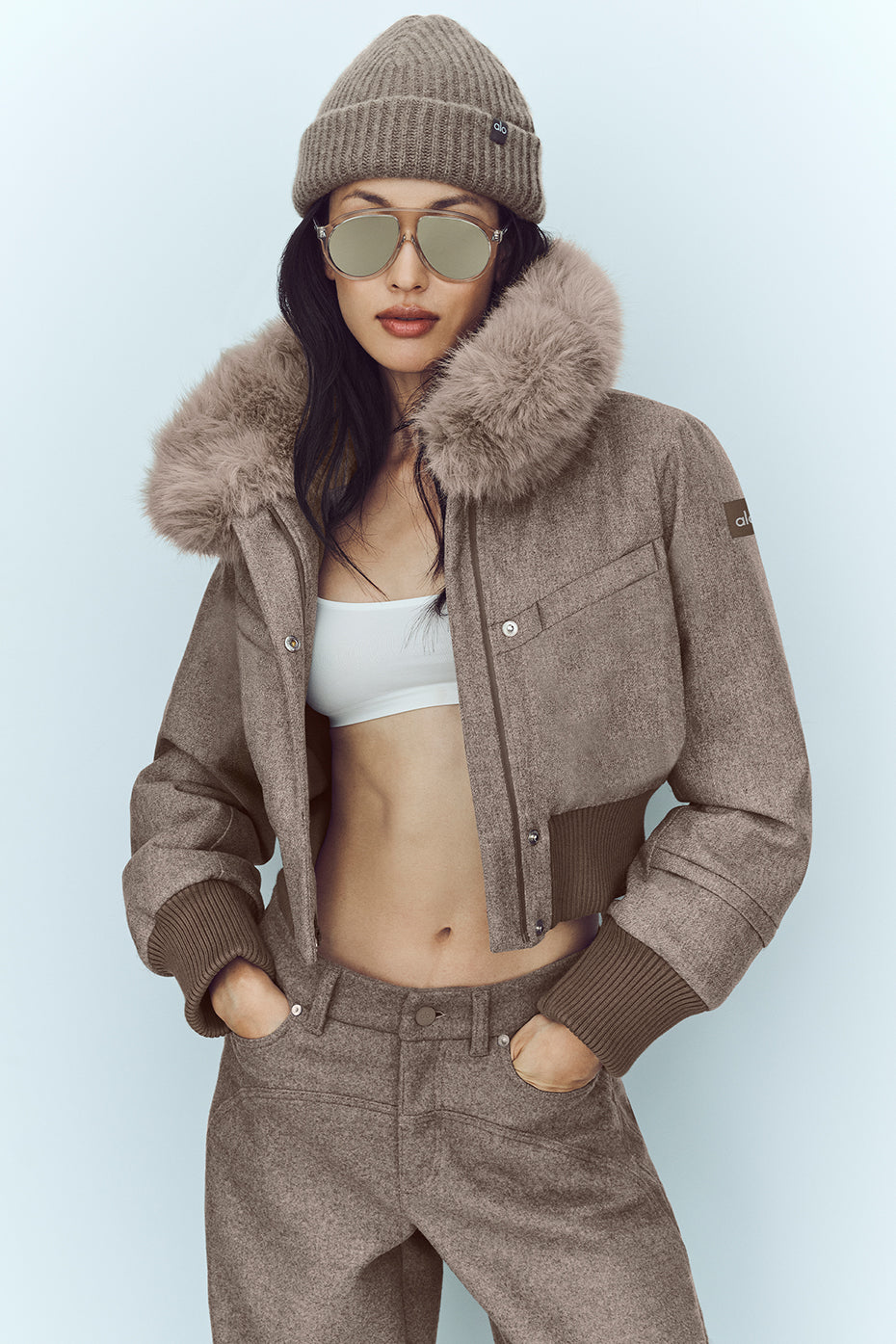 A jacket defined by structure and softness. The Wool Blend Bunny Slope Jacket has a sculpted body that creates clean, architectural lines, while the oversized faux fur collar adds a dramatic, cloud-like volume. Ribbed knit panels at the cuffs and waistband ground the silhouette, offering a tailored counterpart to the plush texture above. It’s winter dressing with a refined twist.